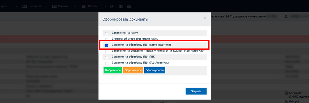 Согласие на обработку ПД в адрес ОИ является обязательным вложением, без которого электронная заявка на карту тахографа не будет исполнена.